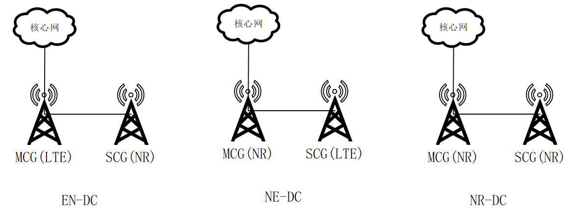在NR阶段,由于运营商的需求迥异,同时为了与最大程度的重用现有的LTE网络,NR定义了3中DC场景:EN-DC, NE-DC 和NR-DC。