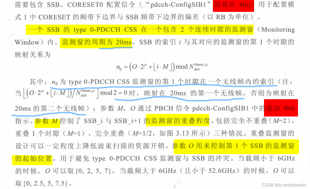 CORESET0(控制资源集合)配置信令(pdcch-ConfigSIB1的高位4bit)用于配置模式1中CORESET0的频带下边界与SSB频带下边界的偏差(以RB为单位)