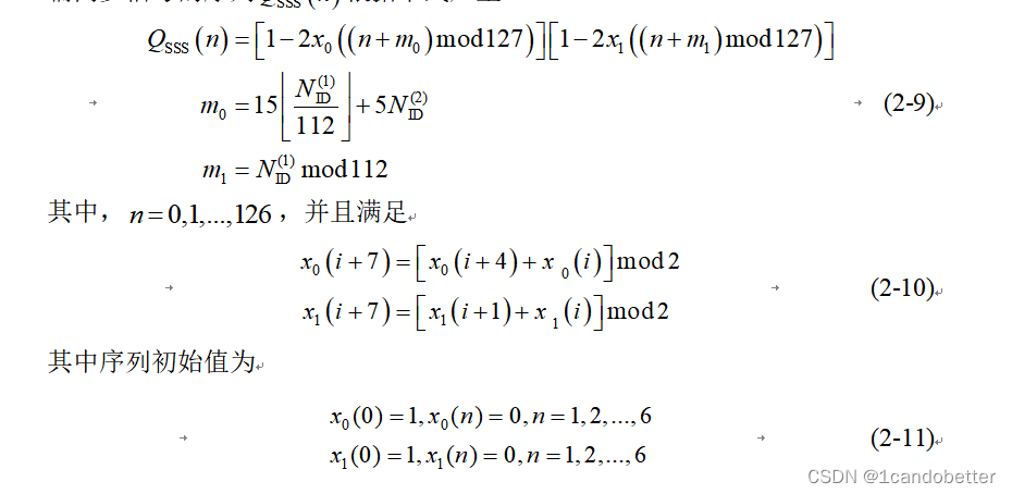 - SSS的gold序列由2个生成多项式产生,第一个生成多项式产生9条序列,第一个生成多项式产生112条序列,