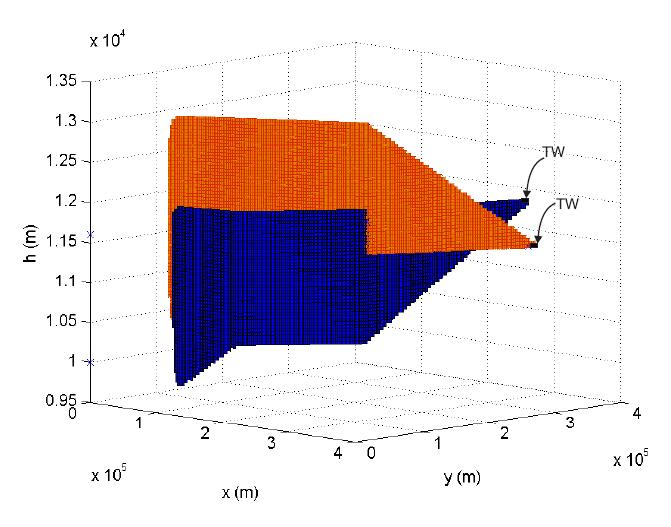 我们的目标是量化每架飞机在特定TW下的机动性自由度,并为多智能体环境下的冲突解决提供一个集中的解决方案。考虑到两架飞机的避碰情况,我们的目标是确定一架飞机可以使用的初始状态集,尽管有风也可以到达其TW,同时避免与其他飞机发生冲突。这是一个到达-避免问题,由于存在扰动,在存在风的情况下,可以将其视为一个追逃微分对策,并将其编码为一个向后可达性的计算。