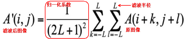 对于(2k+1)x(2k+1)的窗口模板,其滤波计算公式为: