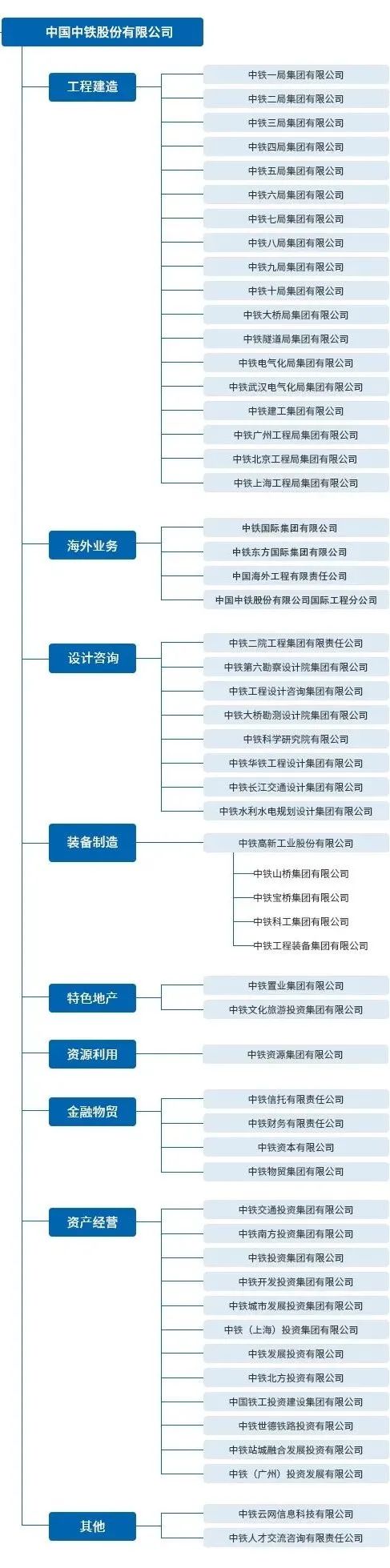 (1)中国中铁56家成员企业组织架构一览!