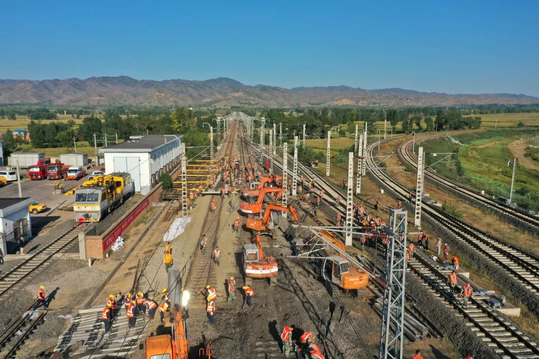 导读:2022年9月8日上午8时,随着一声令下,北京局集团公司管内唐包线小蒜沟站、万全西站机器声齐鸣、号角震天,1500名干部职工涌上线路,一场道岔大修施工会战火热开场。历时240分钟对唐包线小蒜沟站、万全西站4个咽喉岔区的10组道岔进行集中更换,完成线路分解拆除、道床平整、轨排移动、线路接驳、捣固回填、拨正整细、旧料回收、外观整理等各环节工作。