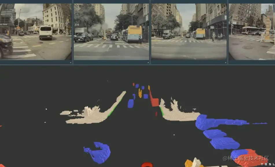 我们就拿去年的 AI Day 上,特斯拉关于自动驾驶的解决方案来说吧。大家都知道,想要实现自动驾驶,车辆至少要对其所在环境有一个清晰的,准确的了解。这就是少不了需要对周围环境进行 3D 重建。大多数公司借助于激光雷达来构建 3D 环境,或者直接使用高精度地图。