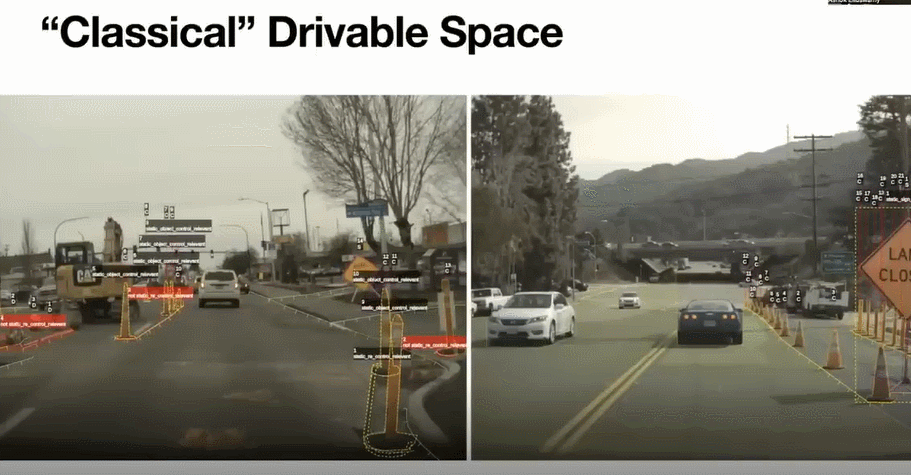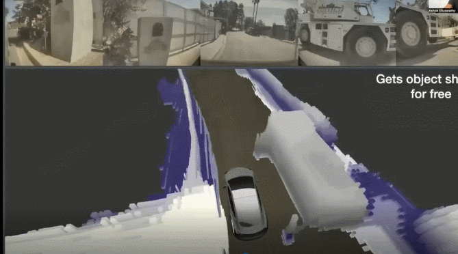 在特斯拉以前的数据库中,图片展示的物体并没有经过训练,那么特斯拉的自动驾驶系统便不会检测到此物体,若此时特斯拉汽车突然加速,想想这是多么可怕的事情,而通过Occupancy Networks便可以成功的检测出此物体。