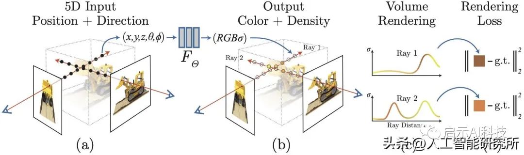 生成 3D 体积后,使用 NeRF将输出与经过训练的 3D 重建场景进行比较。