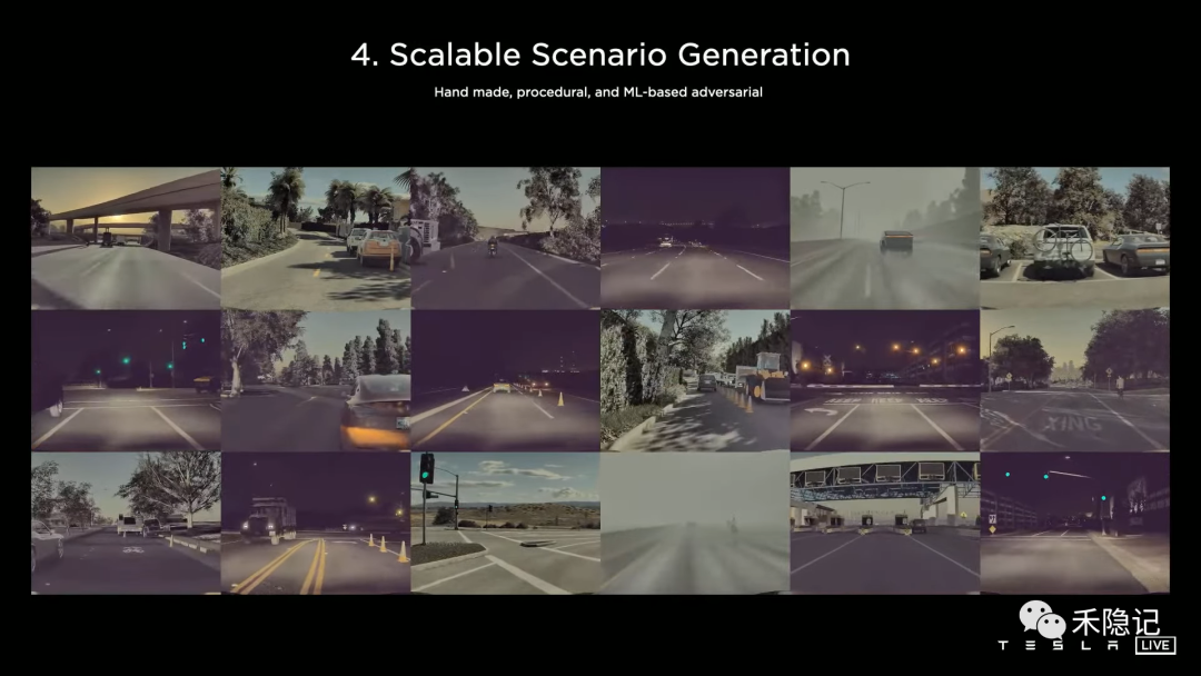 针对自动驾驶可能遇到的各种场景,构建了大规模的可扩展场景库,由计算机通过调整参数生成不同的场景形态,例如道路曲度等,同时由于大量的仿真场景可能是无用的,例如实际该场景下汽车的决策已经正确,为了避免计算资源的浪费,特斯拉还引入了MLB等神经网络用来寻找故障点,重点围绕故障点进行仿真数据创建,反哺实际规划网络,形成闭环。