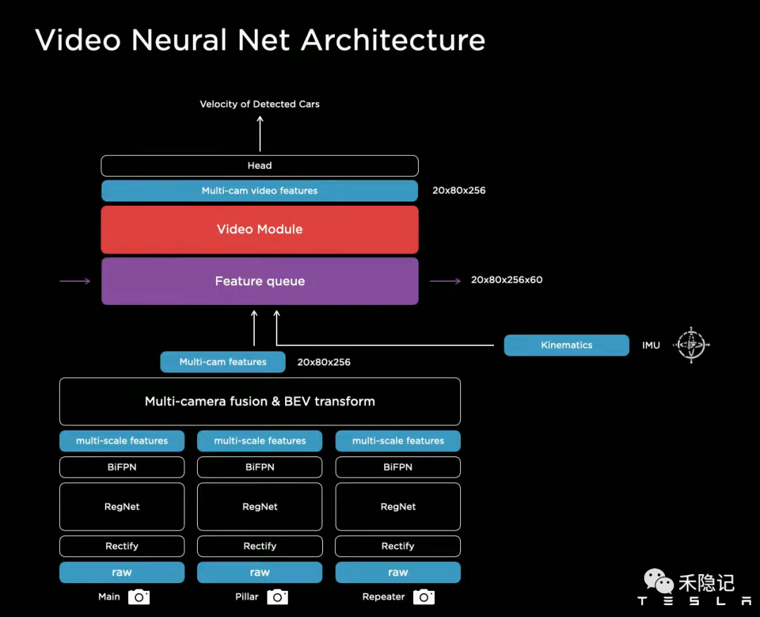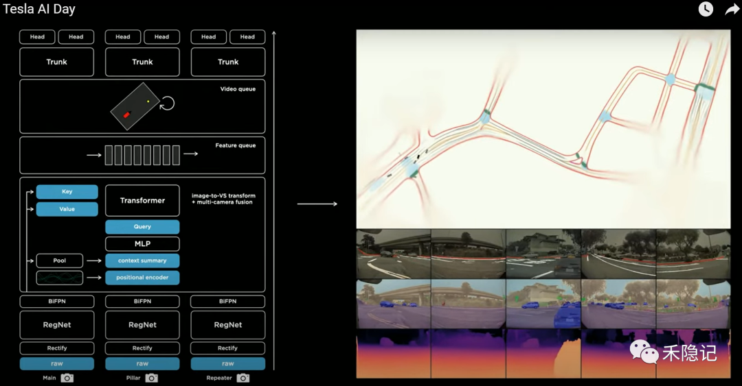 以上便构成了特斯拉的感知网络架构,通过端到端的训练模型,从视频数据输入到向量空间输出。
