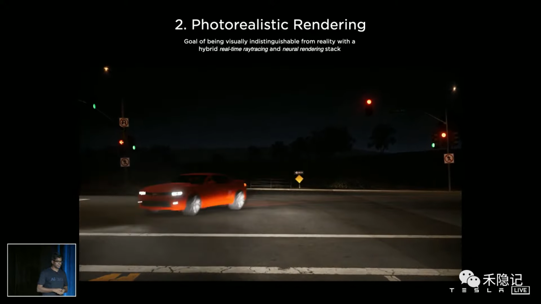 为了真实的模拟现实世界场景,要求仿真渲染要尽可能做到逼真,特斯拉利用神经网络渲染技术来提升视觉渲染效果,同时用光线追踪的方法来模拟逼真的光照效果。