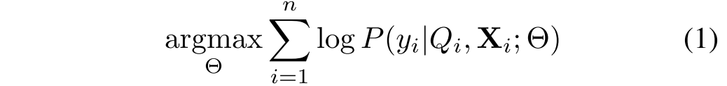 ,单词表一共有L个单词,给定n个问题,和对应的上下文序列,训练一个模型最大化下列的函数: