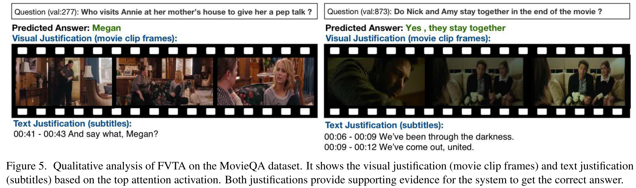 神经网络对语言和视觉的最新见解已经成功地应用于简单的单图像视觉问题回答。然而,为了解决诸如个人照片等多媒体收藏中的现实问题,我们必须用一系列照片或视频来观察整个收藏。当回答来自大量集合的问题时,一个自然的问题是识别支持答案的片段。在本文中,我们描述了一种新的神经网络,称为焦点视觉文本注意网络(FVTA),用于视觉问题回答中的集体推理,其中视觉和文本序列信息,例如图像和文本元数据都被呈现。FVTA引入了一种端到端的方法,该方法利用分层过程来动态地确定在顺序数据中关注什么媒体和什么时间来回答问题。FVTA不仅能很好地回答问题,而且能提供系统结果得到答案所依据的理由。