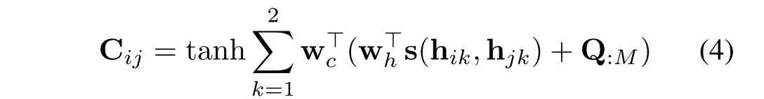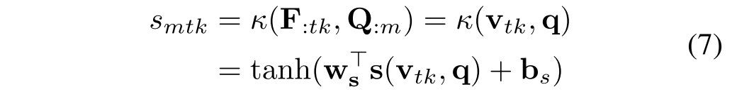 是偏置。s是相似性函数,使用这样的相似性表示,因为他们捕获了余弦相似度和欧几里得距离信息。得到了图文序列注意矩阵