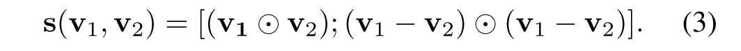 为了计算不同模态(即视觉和文本)之间的相似性,首先用具有相同隐藏状态大小的LSTM网络对每个模态进行编码。然后测量这些隐藏状态变量之间的差异。采用文本序列匹配的研究,聚集余弦相似性和欧几里德距离来比较特征。此外,我们选择保留向量信息,而不是在运算后求和。向量表示可以用作学习模型的输入,学习模型的内积表示这些特征之间的相似性。更具体地,使用下面的等式来计算两个隐藏状态向量v1和v2之间的相似性表示。结果是一个两倍于隐藏大小的向量