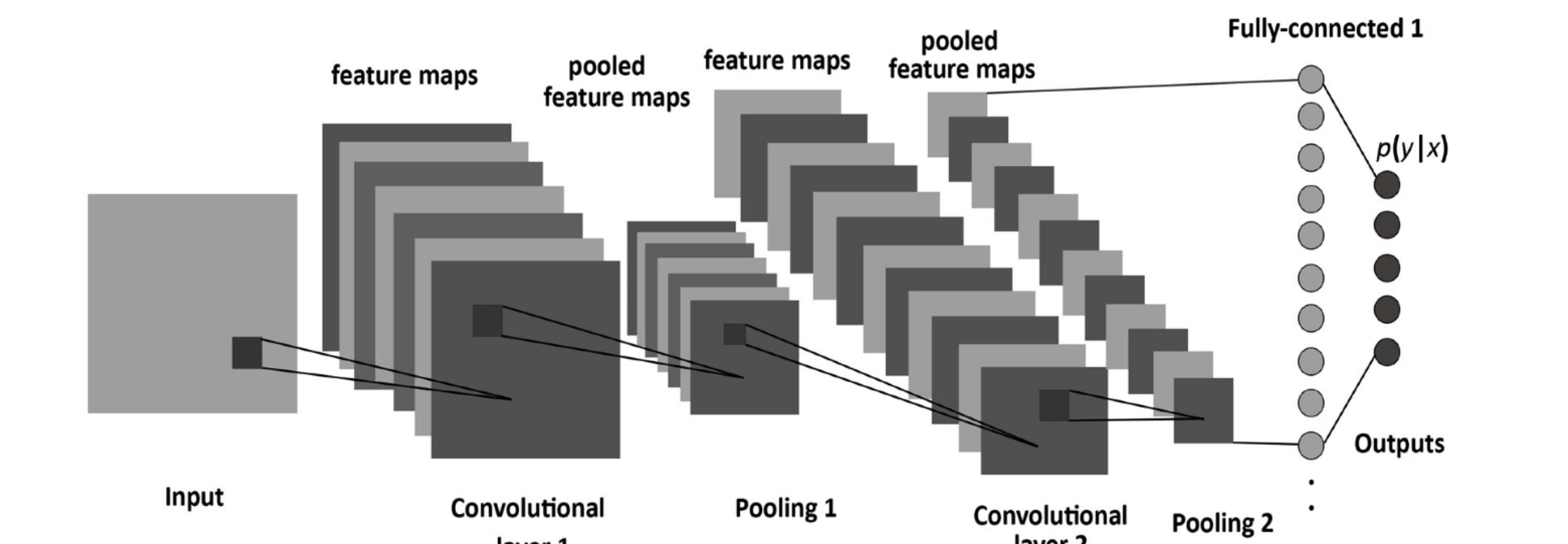 是由很多的层组成的,有卷积层、池化层、全连接层组成。每一层对应很多小的feature maps,feature maps有宽度和高度,可以对应到图像的宽和高。