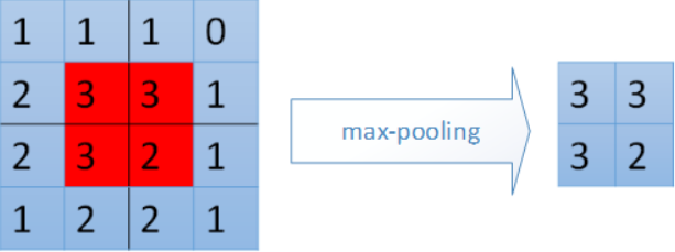 在卷积层之间补充池化层的作用是减少参数的个数,另外也是减少整体训练过程中的计算量。池化的方案有很多,比如在max-pooling中可以只挑选每个2*2的小方格中最大的cell值。