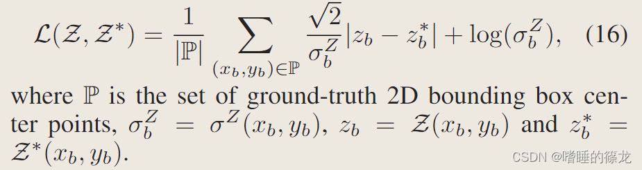 - Depth estimation:Laplacian aleatoric uncertainty loss function(MonoPair&MonoDLE&MonoFlex&GUPNet),公式如下所示: