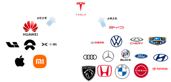 由硬及软这个大分类上,是一大票的传统汽车厂商,这其中可以划成三个小派别。