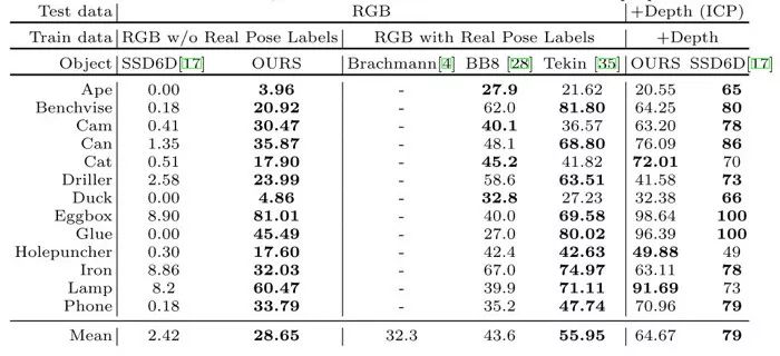 - Wadim Kehl, Fabian Manhardt, Federico Tombari,Slobodan Ilic and Nassir Navab: SSD-6D: Making RGB-Based 3D Detection and 6DPose Estimation Great Again. ICCV 2017.