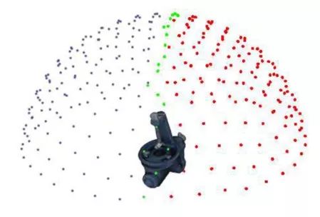 给定一个等距采样的球体,对于对称的目标物体,仅沿着一条弧线采样视图,对于半对称物体,则完全省略另一个半球,如图Fig.10所示