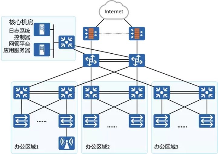 - 数据通信网络:由路由器、交换机、防火墙、无线控制器、无线接入点,以及个人电脑、网络打印机、服务器等设备构成的通信网络