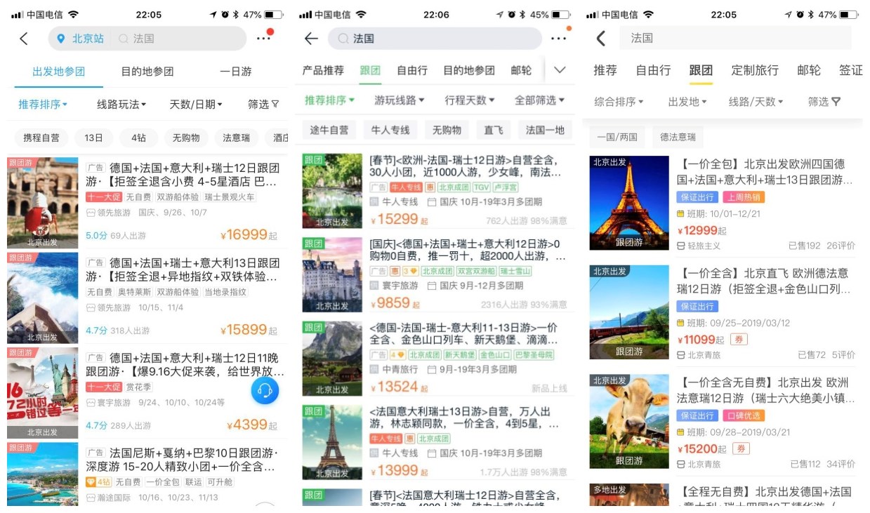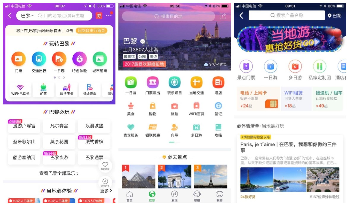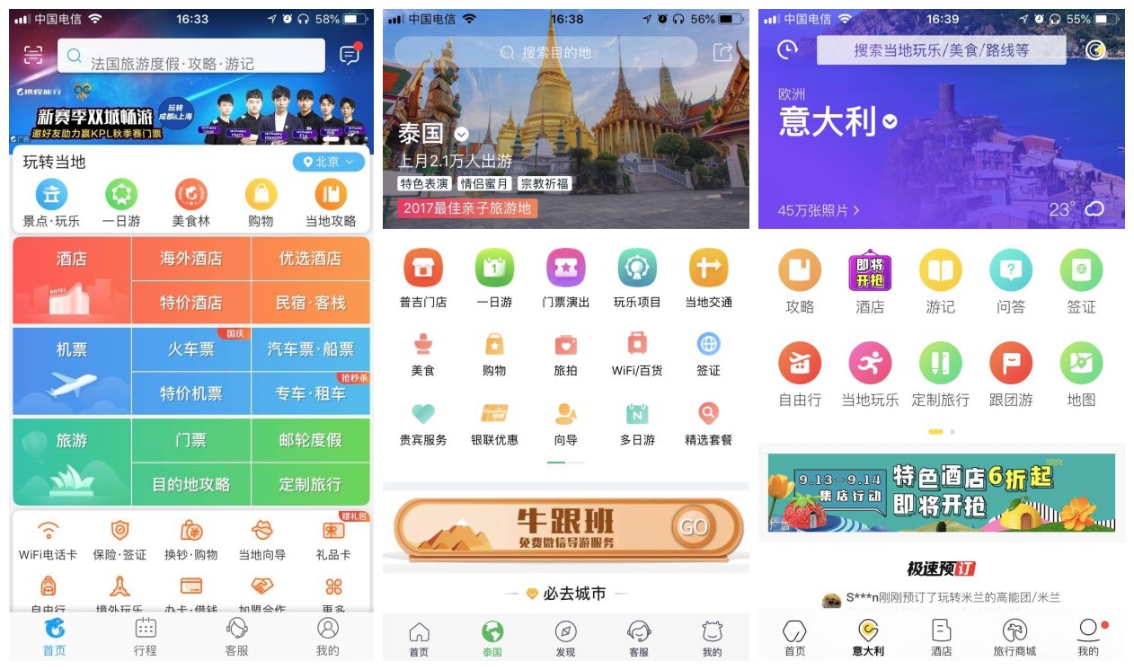 - 这三个APP出境游模块的客户群体、产品和用户需求都相似;
