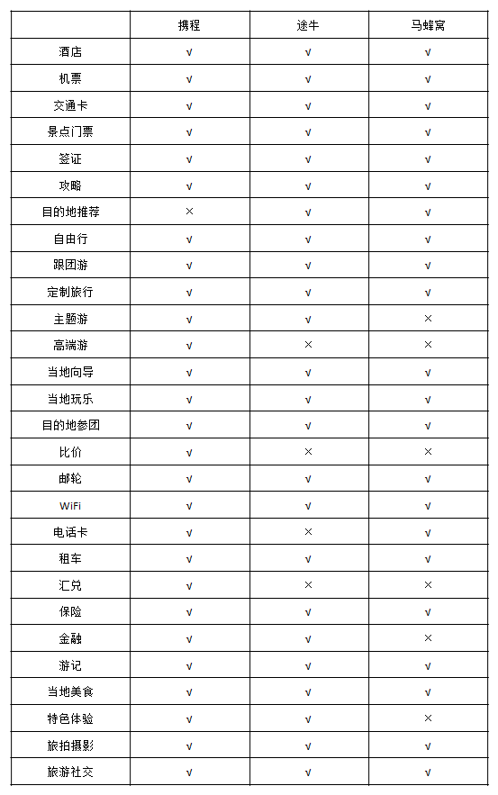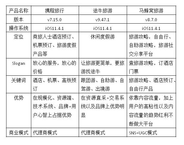 本文选取携程、途牛和马蜂窝三个APP的在线出境游模块进行分析,原因是: