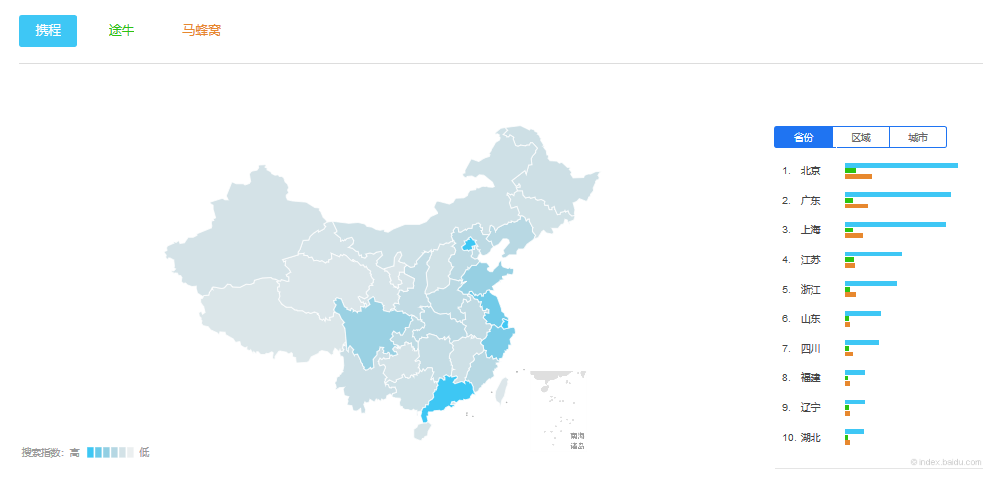 - 沿海开放地区人们思想开放,更能接受在线的方式收集旅游信息、购买旅游产品。