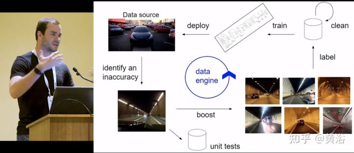 如图是Tesla众所周知的Autopilot数据引擎框架:确认模型误差、数据标注和清洗、模型训练和重新部署。