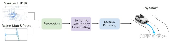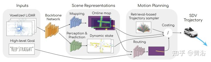 端到端模式可以说绝对是数据驱动的(如图为例),因为传统的优化和规则方法无法处理如此复杂的系统设计和公式化。