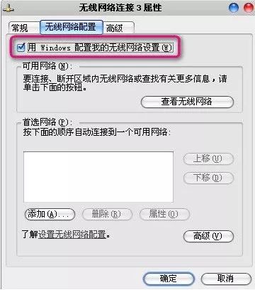 第三步:如果开关打开但仍然搜不到无线网络,右键点击右下角托盘处无线网络图标,点击“打开网络连接”,再右键点击打开窗口中的无线网络图标,点击“属性”,点击“无线网络配置”选项卡,在“用Windows配置我的无线连接设置”前打勾后“确定”,再次打开“查看可用的无线连接”查看是否可以。