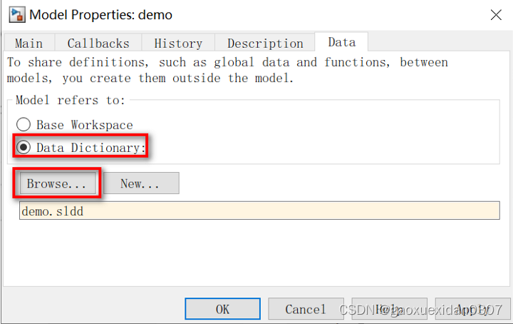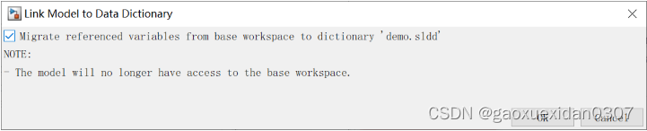 1. 打开Simulink模型–>Model Properties–>Link to Data Dictionary