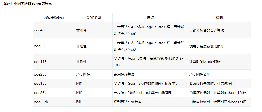 3.因为没有一种算法可以有效地解决所有的ODE问题,为此,MATLAB提供了多种求解器Solver,对于不同的ODE问题,采用不同的Solver。