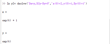 dsolve函数用于求常微分方程组的精确解,也称为常微分方程的符号解。如果没有初始条件或边界条件,则求出通解;如果有,则求出特解。