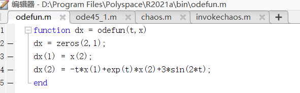 下面就可以利用转换好的微分方程组来编写odefun函数。