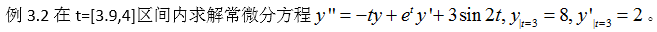本例中只需在例3.1的基础上编写主函数,加上求解区间和边值条件即可。需要注意的是,ode45的运行结果以列向量形式给出。因此在本例中,x的第一列为y,第二列为y’。如果遇到变量不是列向量形式的,可以考虑利用reshape函数做矩阵变换。