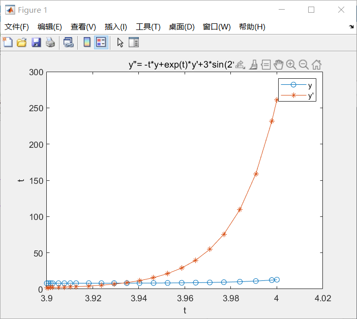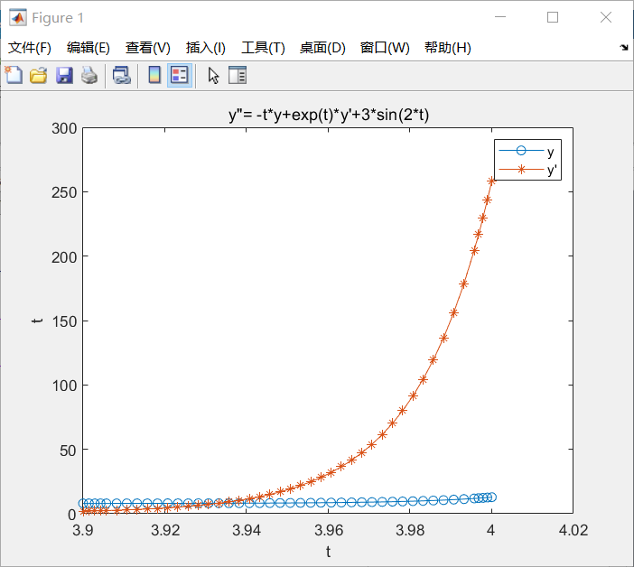 plot(t,x(:,2))画出来的是x的第二列数据,即为y’;
