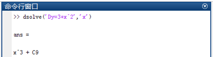在命令行输入: dsolve('Dy=3*x^2','x') ,摁下enter键后输出运行结果。
