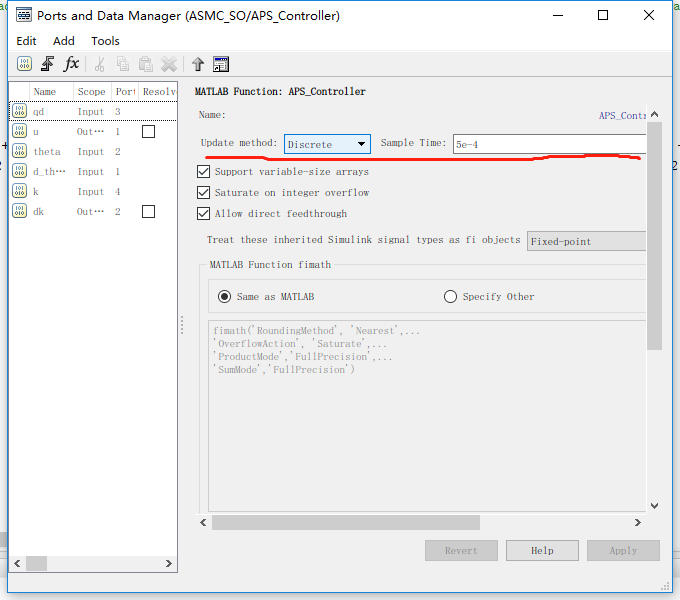 update method改为Discrete, sample time为设置的采样时间。