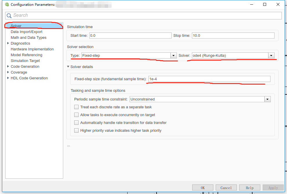 Simulink界面:Simulation→Model Configuration Parameters