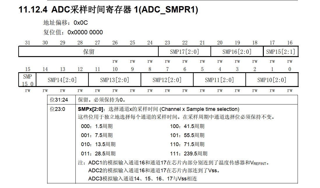 看一个寄存器,这个是设置ADC的采样时间,采样时间: