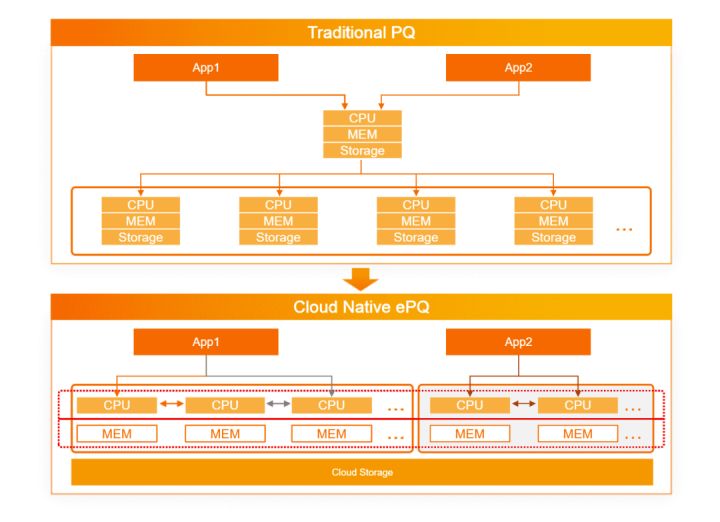 为此阿里云推出了节点内以及跨节点并行查询(Parallel Query)功能,针对性的利用多核CPU并行计算来提升查询响应速度。但随着共享存储层的数据量进一步增长,单机的扩展能力将遇到瓶颈,包括CPU、Memory和IO等,传统数据库通过share nothing的分片架构和MPP计算引擎来突破单机的资源瓶颈,但这破坏了云上计存分离带来的独立扩展性和极致弹性能力,有悖于现代云原生数据库的发展趋势。
