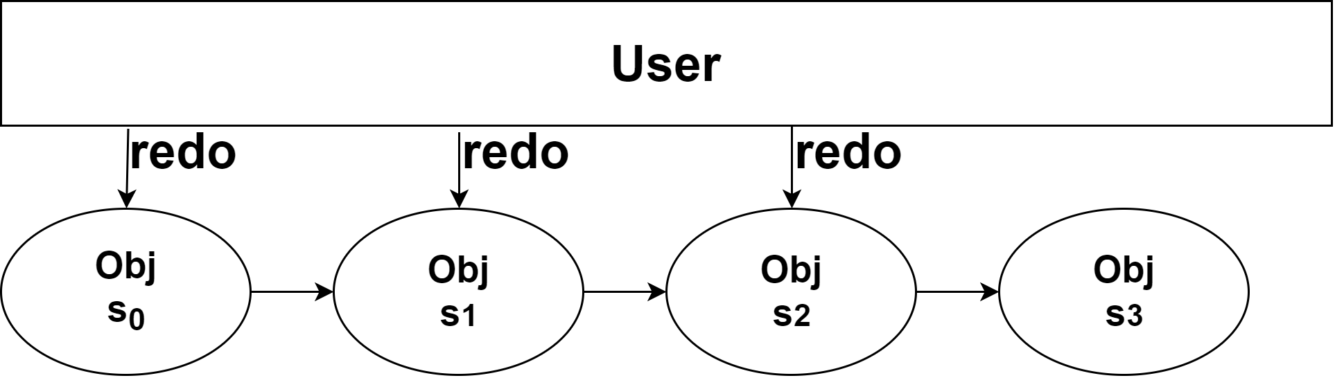 例如,若在图2所示的情况下。用户在 O b j Obj Obj 的 s 3 s_3 s3 状态下,执行了 3 次撤销操作,回到了状态 s 0 s_0 s0。此时用户应当可以执行有限次重做使得 O b j Obj Obj 可以回到 s 3 , s 2 , s 1 s_3,s_2,s_1 s3,s2,s1 的任意状态。