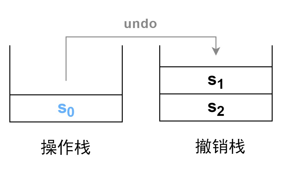 - 操作栈初始含有被操作对象的初始状态 s 0 s_0 s0,撤销栈初始为空。