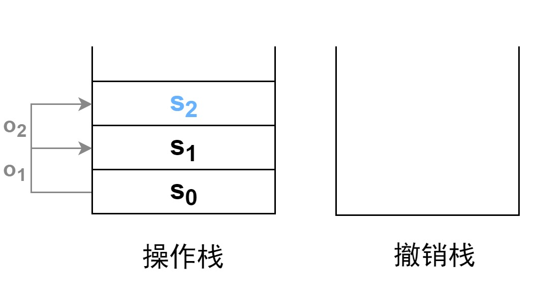 假设我们已经进行了两次操作,在操作栈中压入了三个状态。蓝色的为栈顶元素,是被操作对象的当前状态。