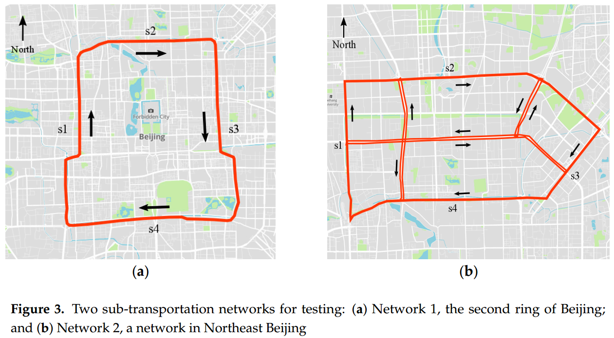 本文选取了两个交通网络,一个是二环路(单向,236个路段),一个是东北部的一个子网络(部分双向,352个路段)。进行了4次实验,task1-task4.