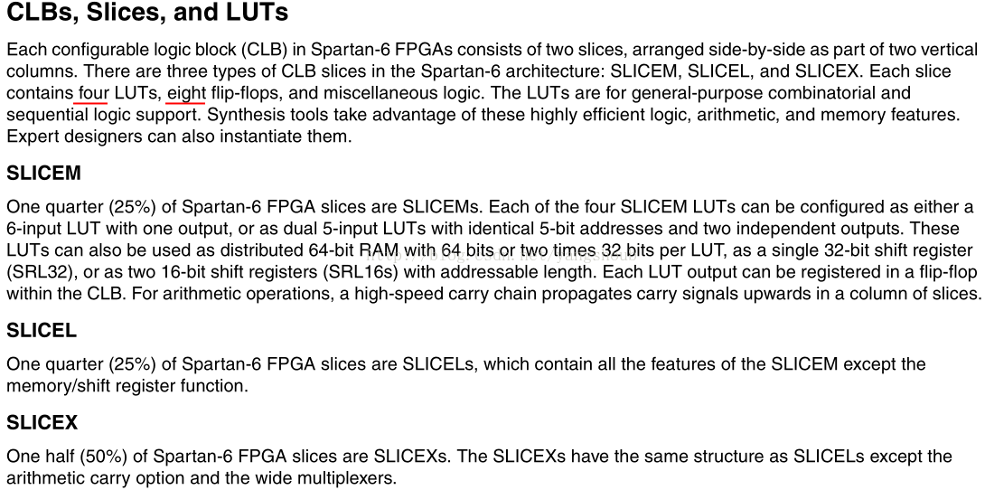 不同型号芯片中的CLB不同,就要看Dadasheet了,下述是SPARTAN-6的。