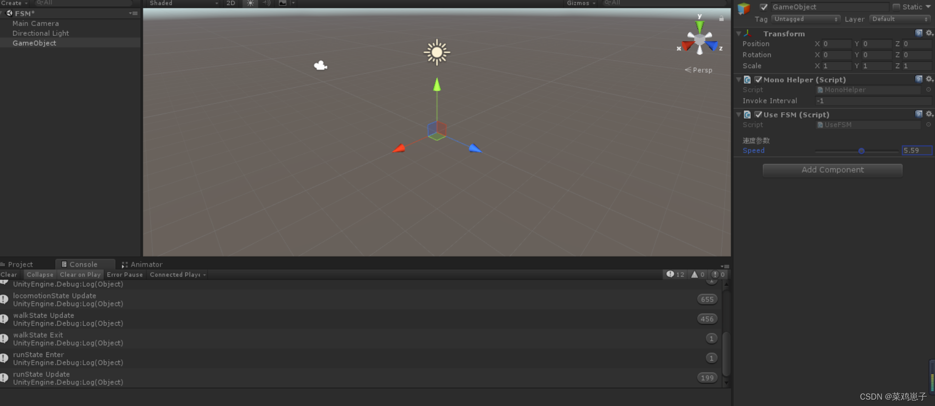 编写一个通用的状态框架,不仅可以用于动画的转换,可以针对所有需要用到状态的情况。主要是模拟动画Animator Controller里的作用,写一个简单的框架。