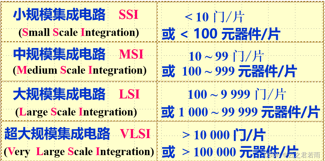 数字逻辑电路的集成度:
