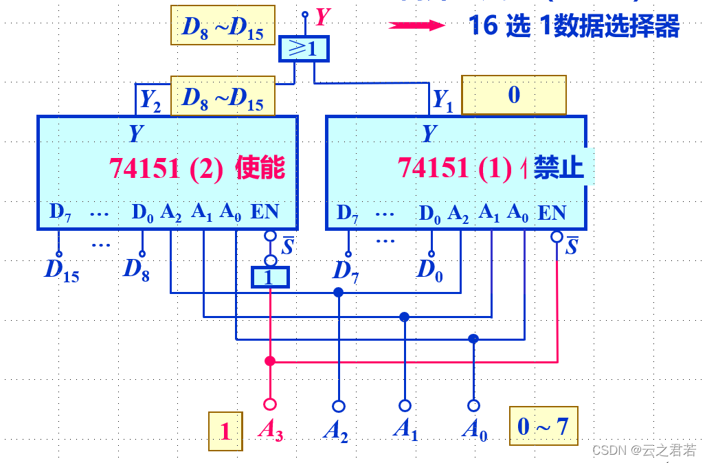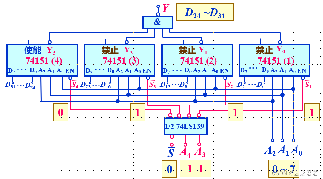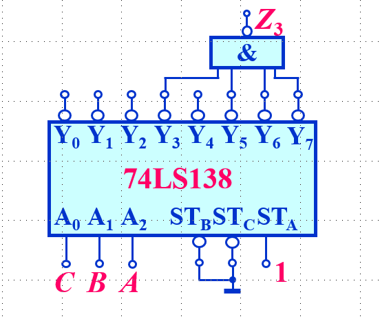 而A0 A1 A2 是地址端;3 → 8 → 1; S非 是使能端,当且仅当值为0时使能;