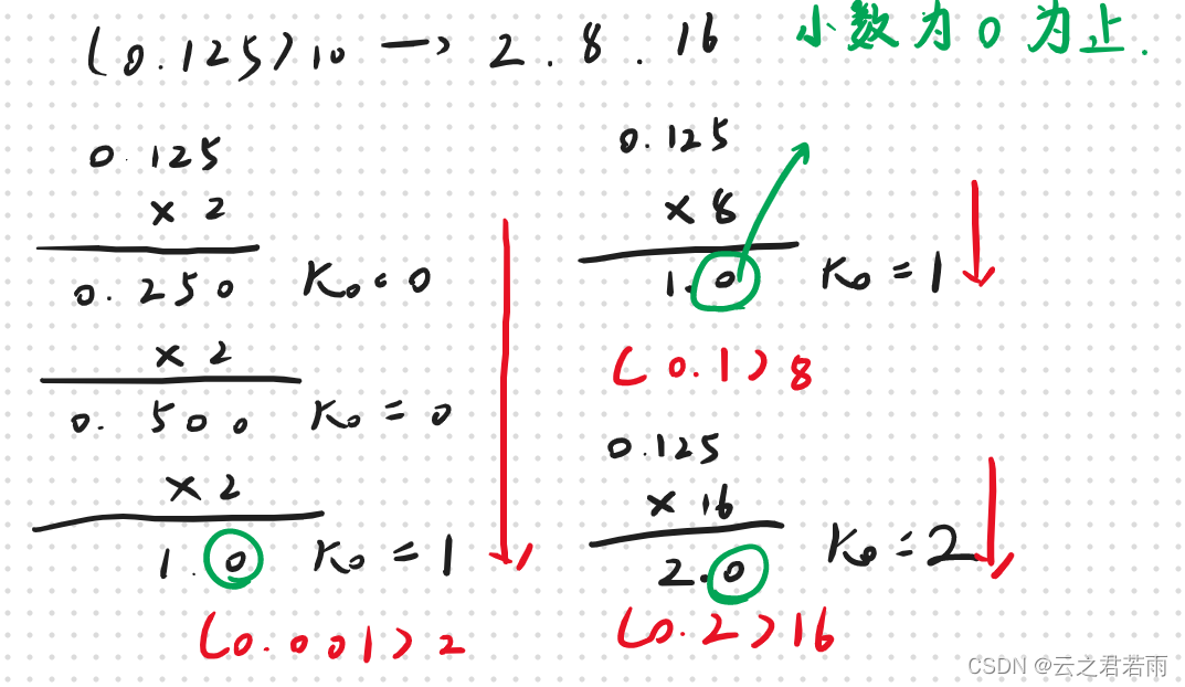当十进制数包含小数时,不断地将小数部分乘以要转换的进制,并按其积的正数,依次确定K0,K1······,直到被积数为0;这里举个栗子: